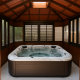 The Aspen 10×14 enclosure can fit a 9-foot square spa It can comfortably accommodate a 7-foot spa along with room for steps, a small table, and chairs to relax around the hot tub.