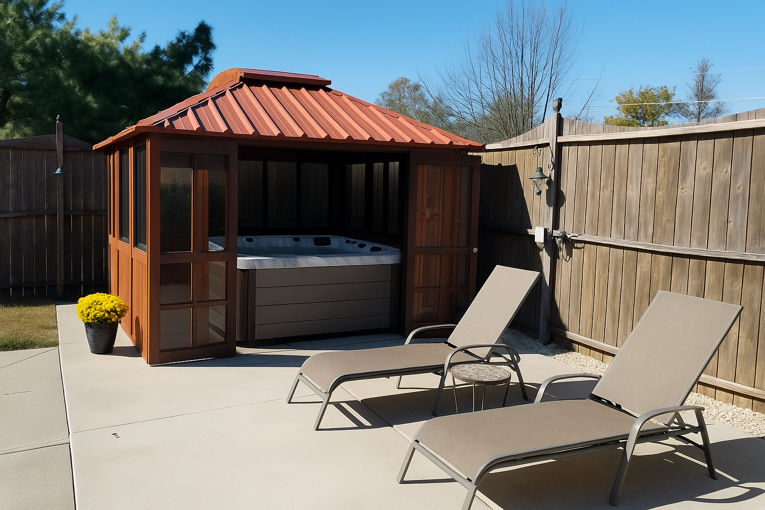 Upgrading your gazebo with sliding screens and tempered glass enhances comfort and safety. Sliding screens provide excellent ventilation and natural light while keeping insects and debris out. Tempered glass improves insulation, durability, and privacy. Together, these upgrades create an inviting, energy-efficient, and customizable space for an optimal hot tub experience.