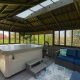 This designer inspired hot tub enclosure includes a Duraflex PC roof with a skylight and lockable sliding windows made with aluminum frames and optional tempered glass. The entrance consists of 2 large lockable swing French doors made of heavy duty aluminum. Additional upgrades are available for a fee including a screen kit and roof bracket support. Multiple upgrades can be added together at a reduced cost.